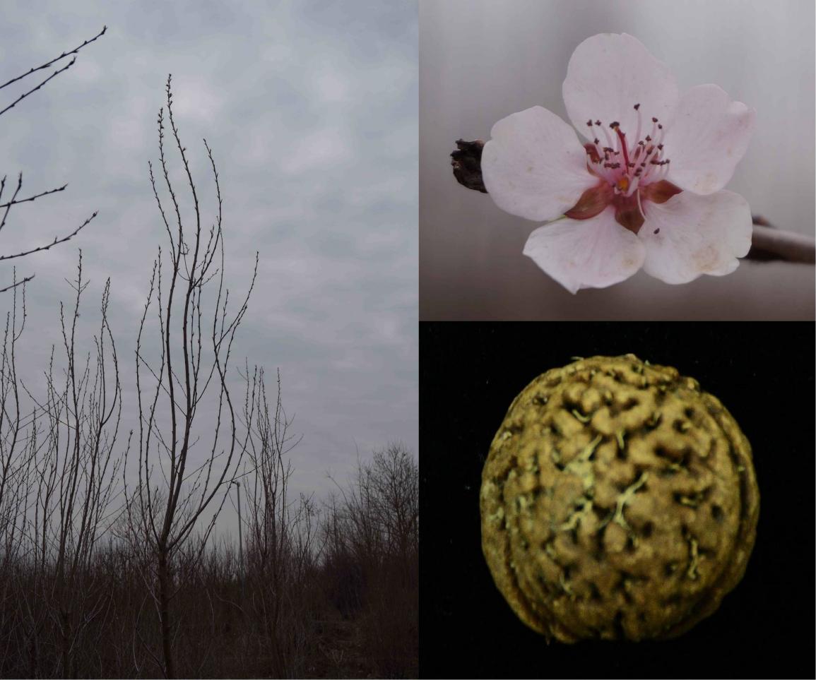 ‘擎天’(品种权号20251003):成龄树高12.2m,分枝角度柱型,曲枝,花浅粉色,单瓣,果实绿白色,圆形,核形状椭圆形,核纹多。此品种树形独特,抗性强,具有独特的观赏用途,适合推广种植。